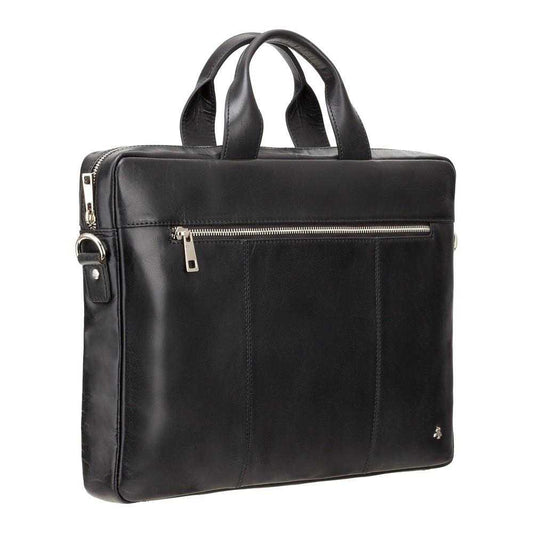 Charles 13" Leather Laptop Briefcase- Black